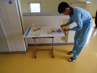 当日の悪天候と湿気で廊下に置いてあったプログラム制御用ロボットのコースの紙によりゴールしにくかったため、昨日授業で行ったデータを使用して本日は授業を展開した。