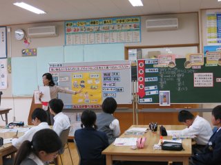 | 3年生の授業 (消費者の声で改良された商品の説明) |