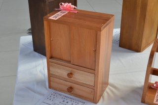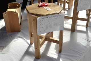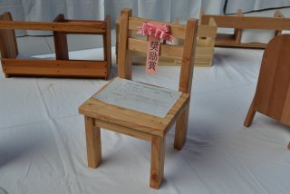 (額は、千葉県千葉特別支援学校の生徒さんが製作してくださったものです) (山武杉で作られた「チーバくん」ストラップ)