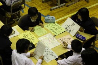 代表の発表を全員が意欲的に聞いて答えていた。今までの学習が生かされた話し合い活動がなされていた。題材の配列が工夫され、繰り返し学習することで定着していた。献立クローバーは、シールでパッとわかりとても使いやすい。評価では、更にAの規準をどこにもっていくのか研究を続けてください。