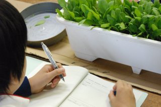 | 成長の様子を記録 | ほうれんそうの間引き作業 | |