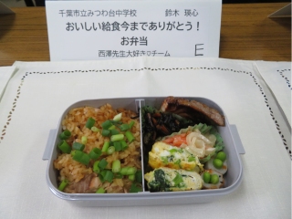 | 3位(県会長賞) 山武市立成東中学校 | [学校給食会理事長賞] 芝山町立芝山中学校 | ||||||